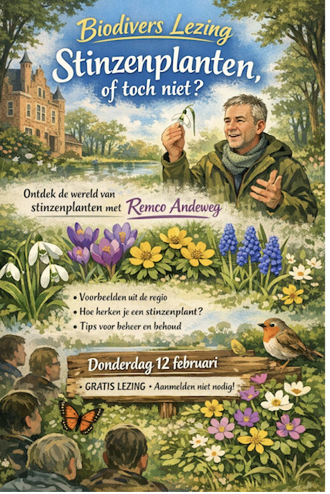 Op Donderdagavond 12 februari is er een Biodivers lezing: 'Stinzenplanten, of toch niet?’.