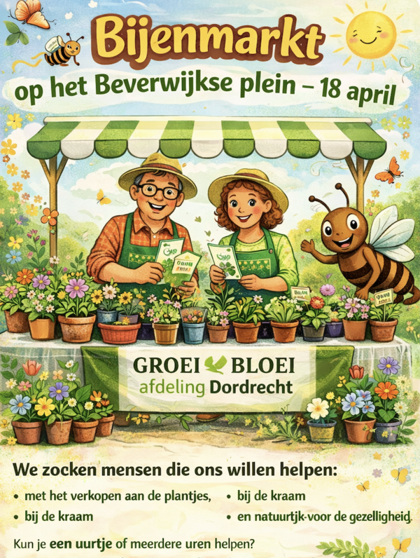🌱 Groei & Bloei afdeling Dordrecht staat er dit jaar opnieuw met een vrolijke kraam vol leuke plantjes en informatieve foldertjes.