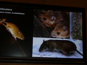 Er waren twee leden van de Zoogdiervereniging en 16 deelnemers . Eerst was er een presentatie met uitleg. De Zoogdiervereniging wil graag meer inzicht en de verschillende soorten muizen die in het land vorkomen. Het is dit jaar het jaar van de Woelmuis. Door het uitpluizen van de braakballen van de Kerkuilen, kan men uit de resten van de braakballen determineren welke soorten muizen op het menu stonden van deze Kerkuilen. Men heeft voorkeur voor de braakballen van de Kerkuilen omdat deze ong. tot 2 kilometer rond hun slaapplaats fourageren en voornamelijk jagen op muizen. Een Uil heeft 2 magen . De eerste maag is enkel om een balletje te kneden van de onverteerde voedselresten en deze dus uit te spuwen. Er zijn 8 soorten muizen te determineren. Alles werd secuur genoteerd door de medewerkers van de Zoogdiervereniging. Er werd benadrukt dat we belangrijk werk deden. zgn. Burgerwetenschap.