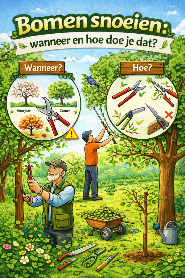 Of je nu een fruitboom, sierboom of leiboom hebt: elk type boom vraagt om zijn eigen aanpak en timing. In dit artikel leggen we uit hoe en wanneer je het beste bomen snoeit. Ook geven we praktische tips en verwijzen we naar onze gratis Snoei & Groei kalender, waarin je precies ziet welke boom je in welke maand kunt snoeien.